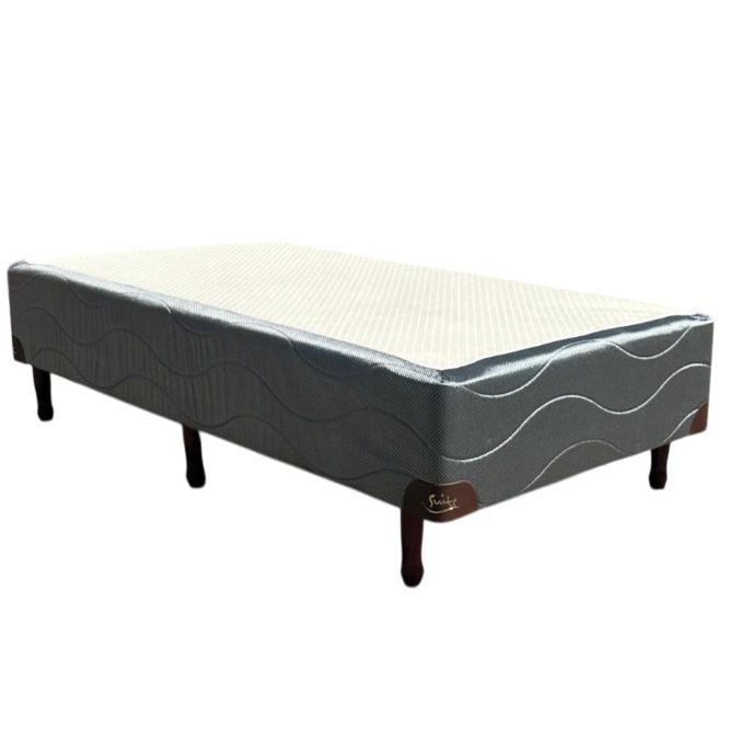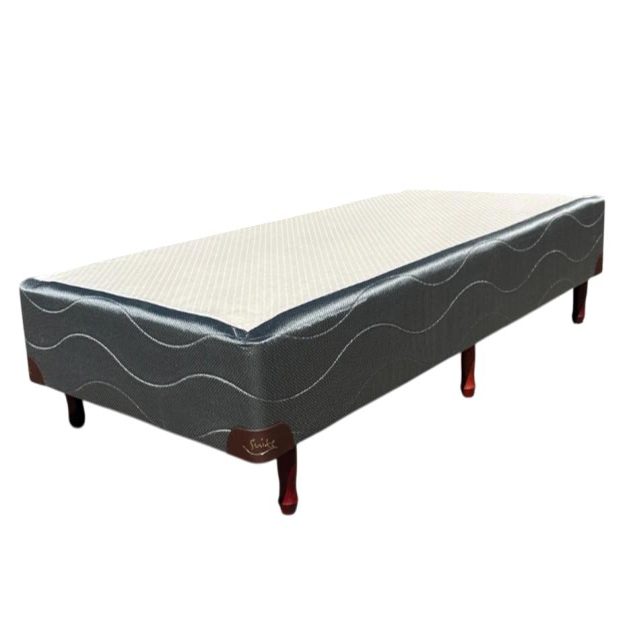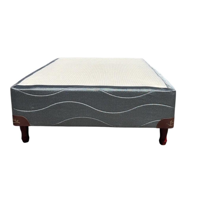 SOMMIER: Base de madera estacionada tapizada, con patas de madera torneadas. Altura Base: 22 cm. Altura Patas: 12 cm.