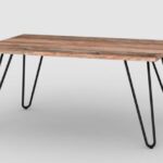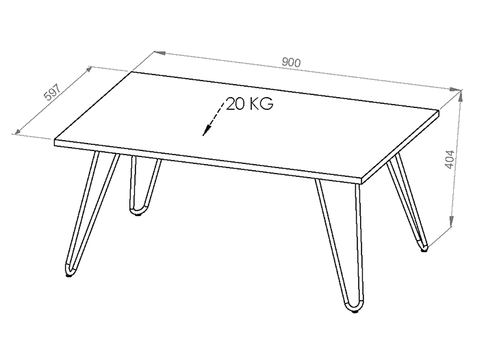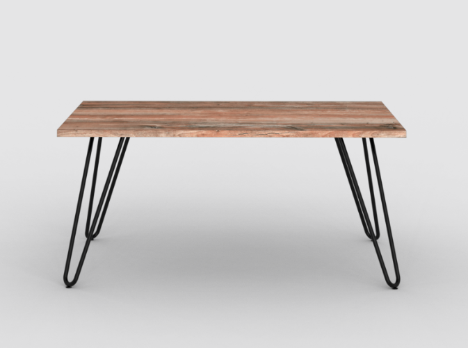 La mesa ratona de la línea industrial posee una tabla rectangular de melamina símil madera color Atakama que es el apoyo principal de la mesa, colocada sobre patas de caño redondo negras.