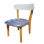Silla Genova con patas roble, respaldo blanco y tela tequila gris